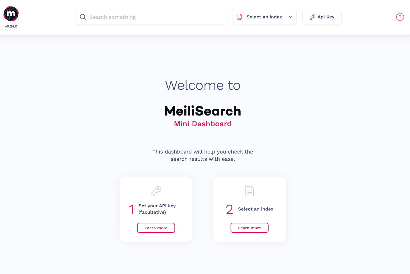 http://localhost:7700にアクセスするとMini Dashboardという管理画面っぽいものが表示されます。